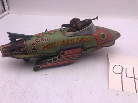 Features; Original Marx toys including Buck Rogers Space Police rocket, A&P tractor trailer, Livestock & dump trucks, WW2 tin litho Army plane, also 1930s Wyandotte car, Structo dozer, tin litho tank & other toys, Selection of 1920s-40s era local advertising calendars, marbles, old Christmas items, 2 Blue gray decorated & other crocks, vintage radios, treddle sewing machines, Hoosier type cabinet, childs sewing machine, fishing buttons, coffee grinders, paper mache jack o lantern, carnival, yellow vaseline & other glassware, vintage eyeglasses, adv. pens & pencils, blotters, brass buckets, wooden primitives, dolls, celluloid, old razors, hoosier jars, Lanterns, costume jewelry, old photos, mid century glassware, many small collectibles, Maytag wringer washer & much more.